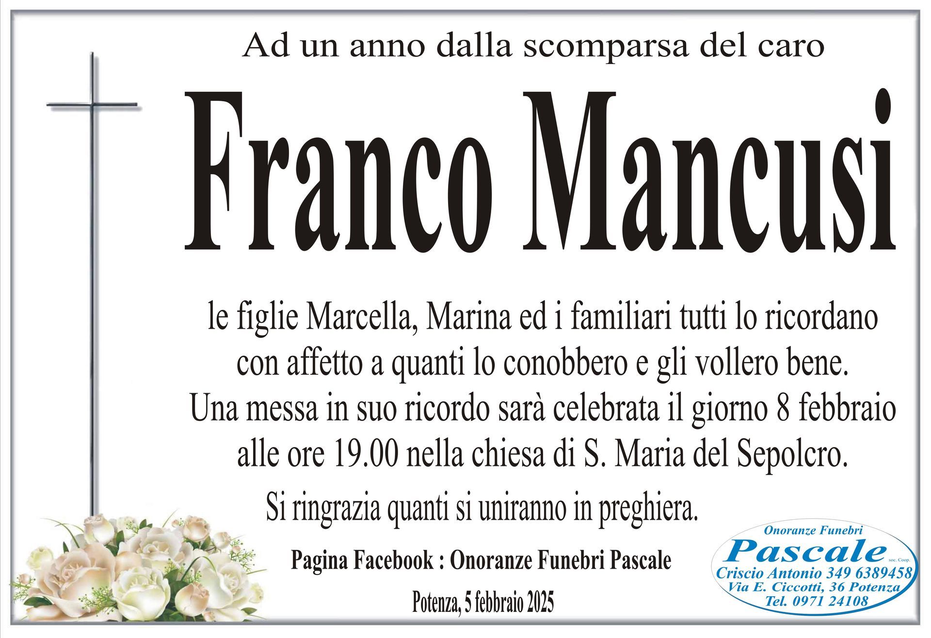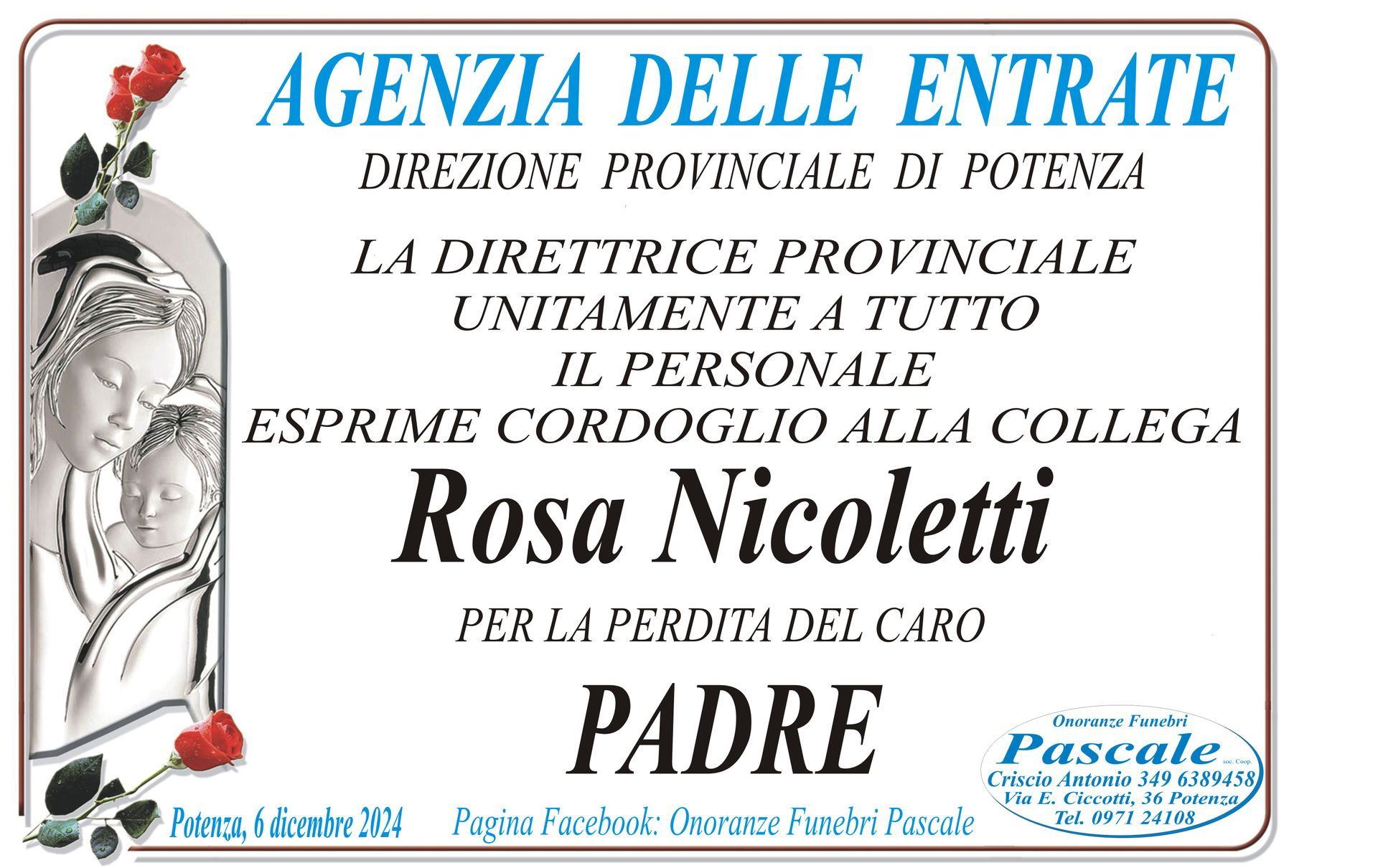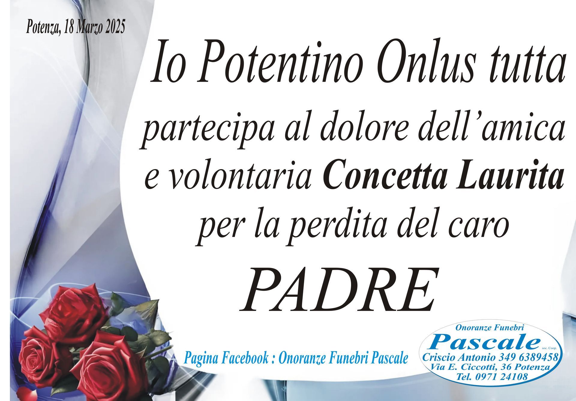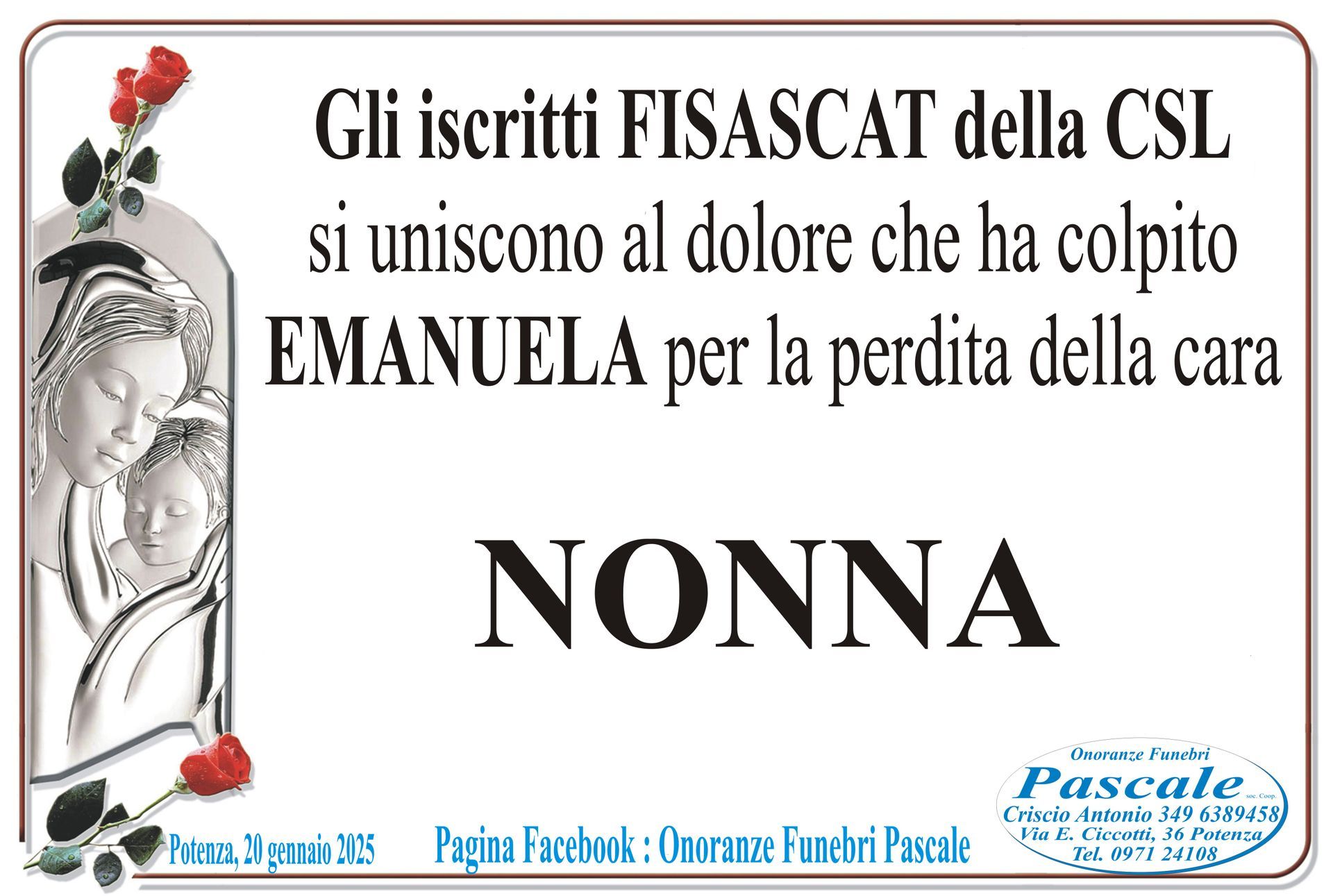 Per informazioni o assistenza contattate la ditta di Onoranze Funebri Pascale.