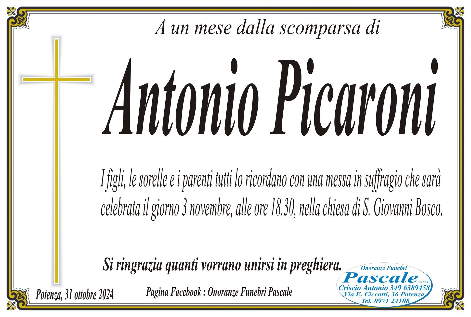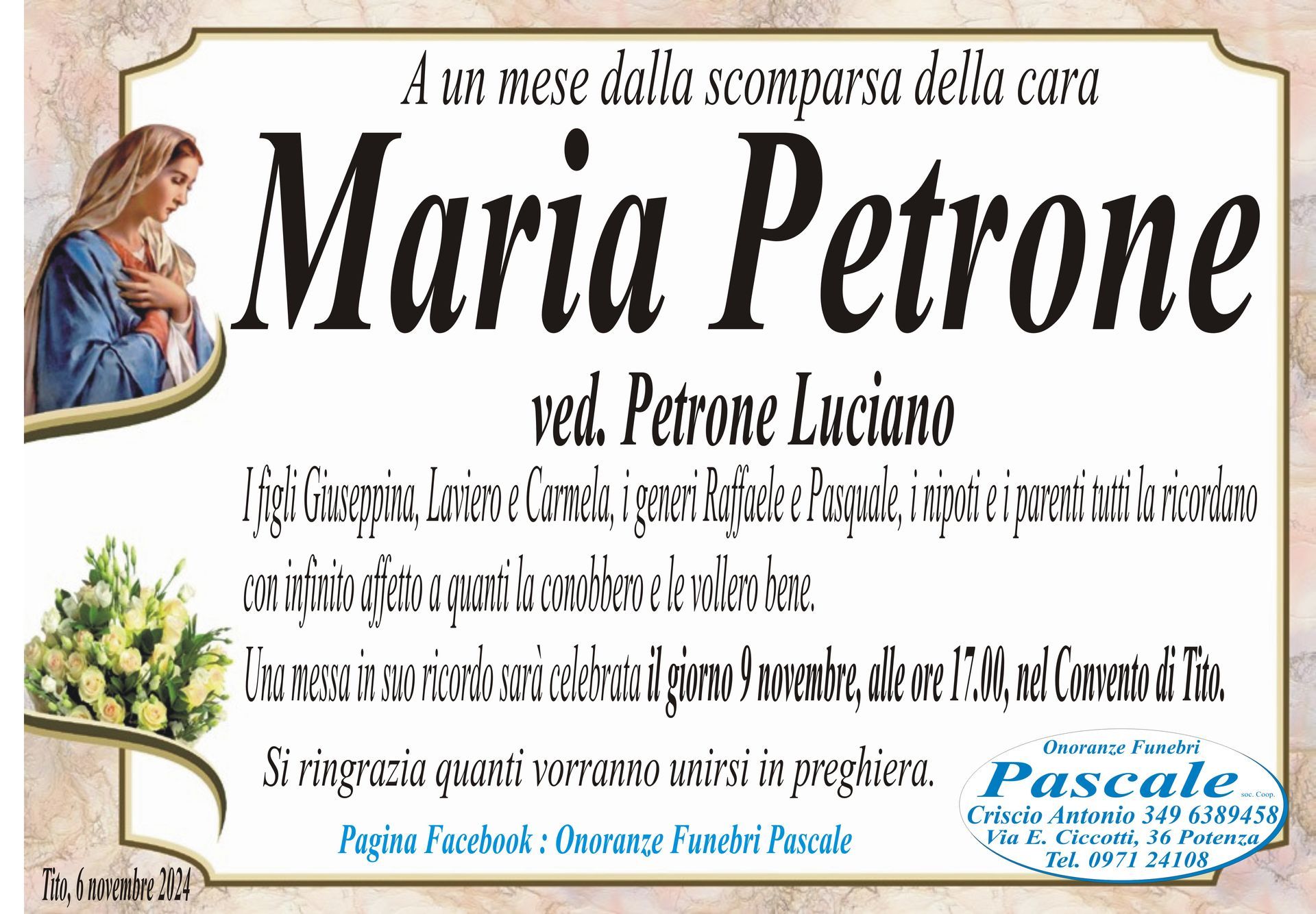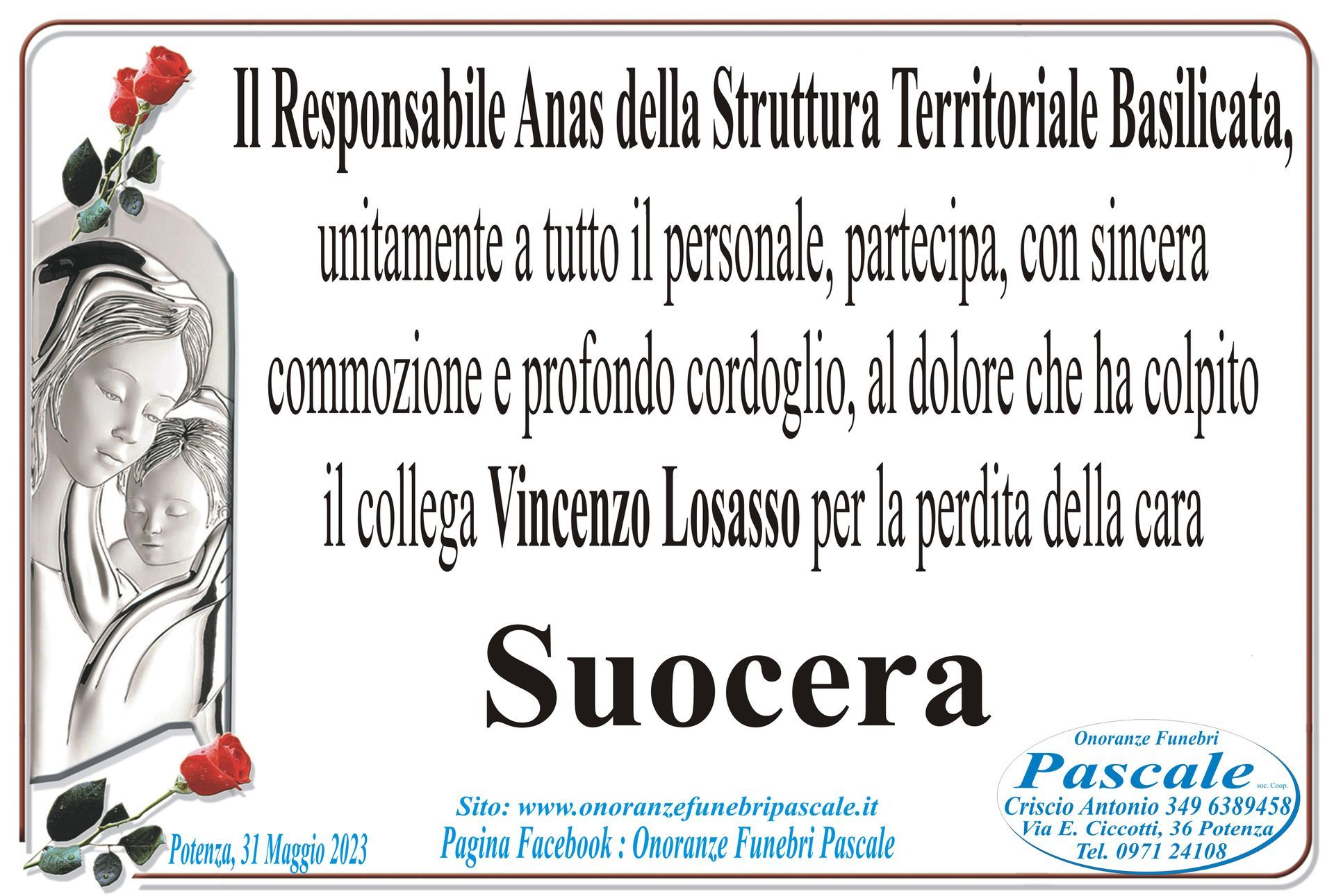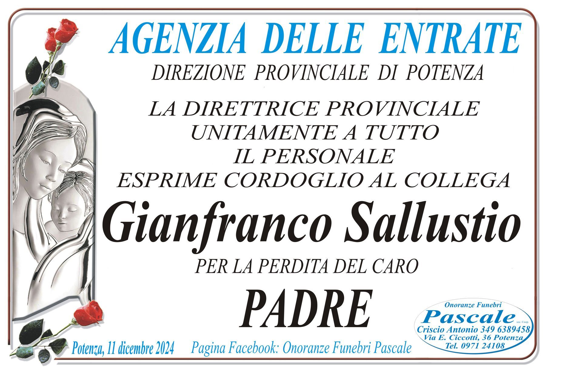 Per informazioni o assistenza contattate la ditta di Onoranze Funebri Pascale.