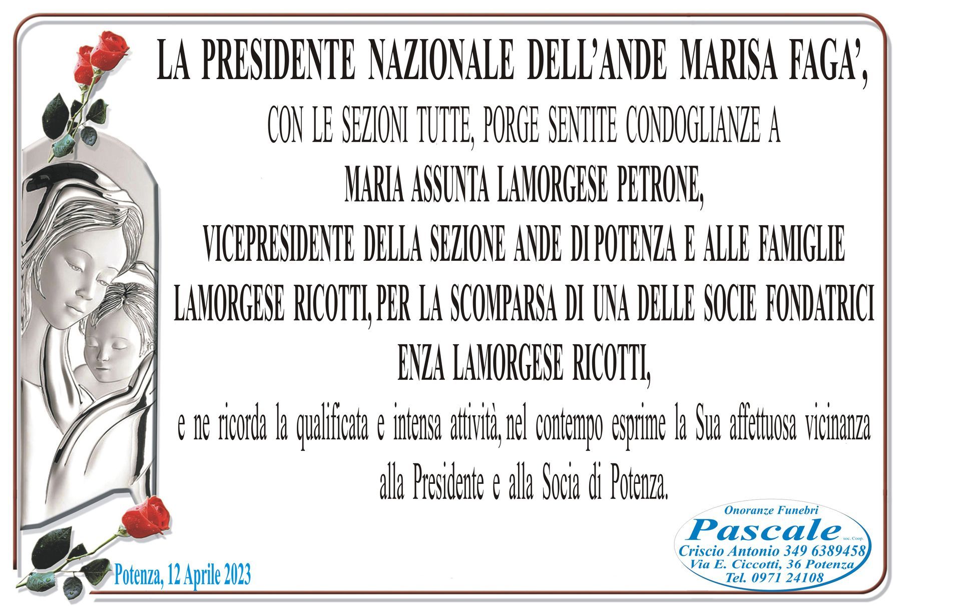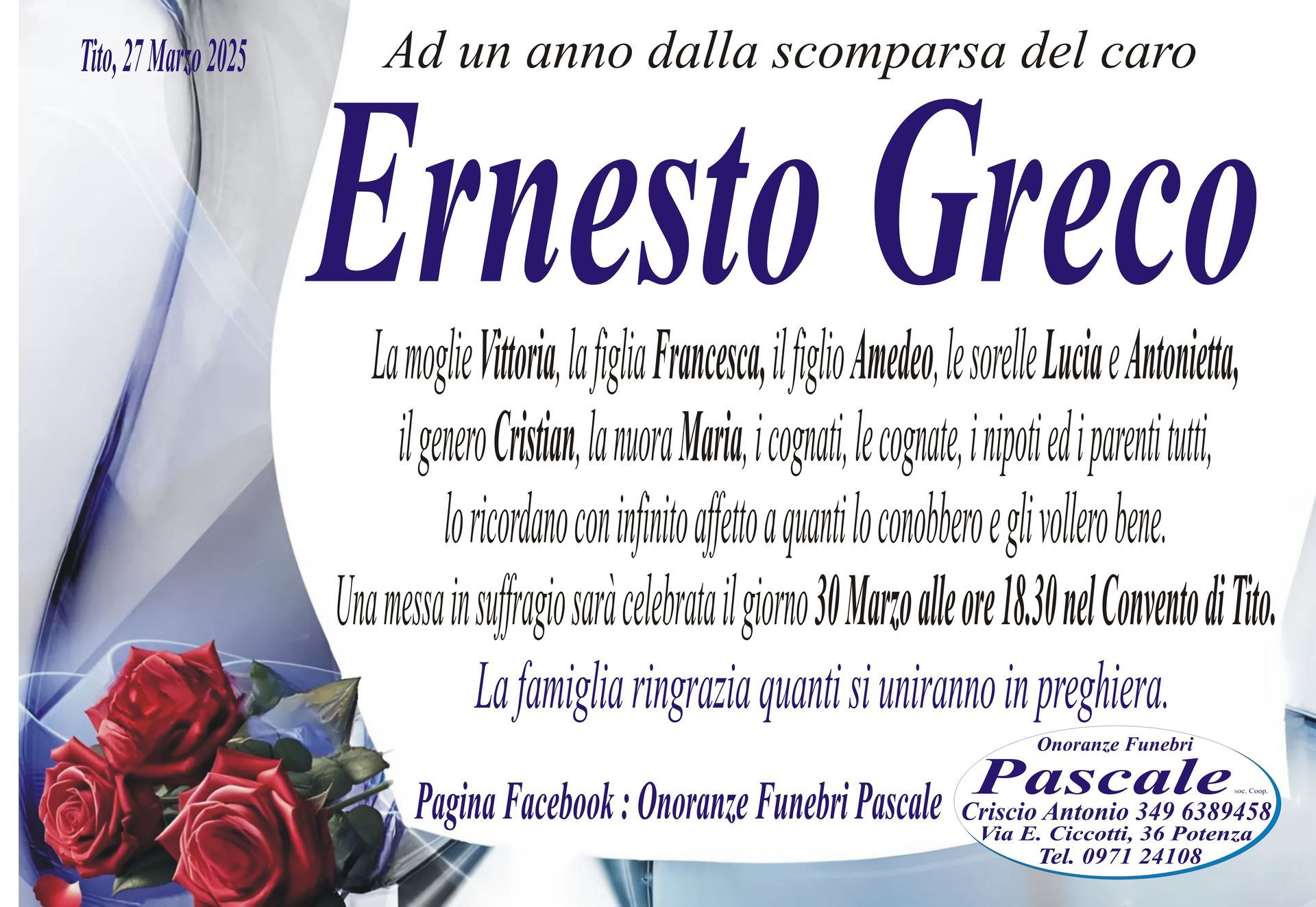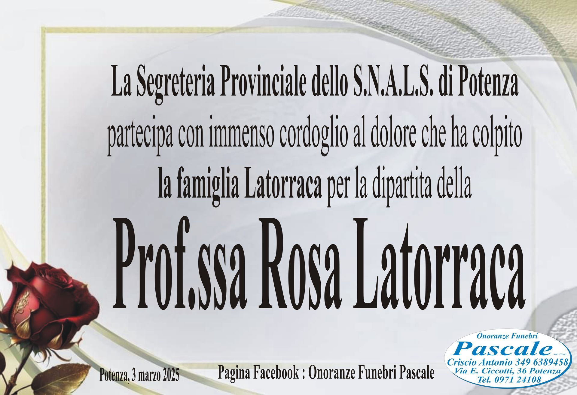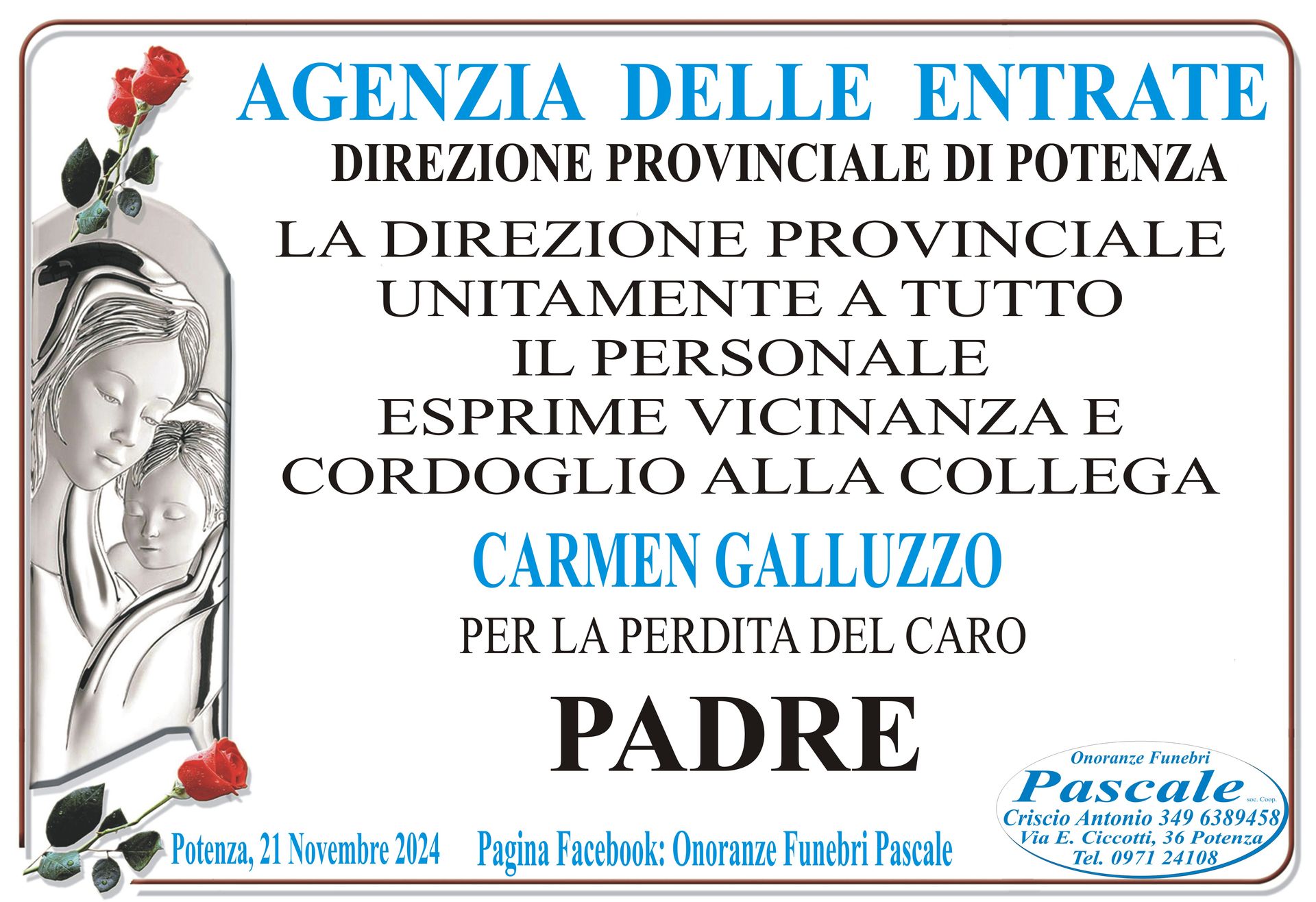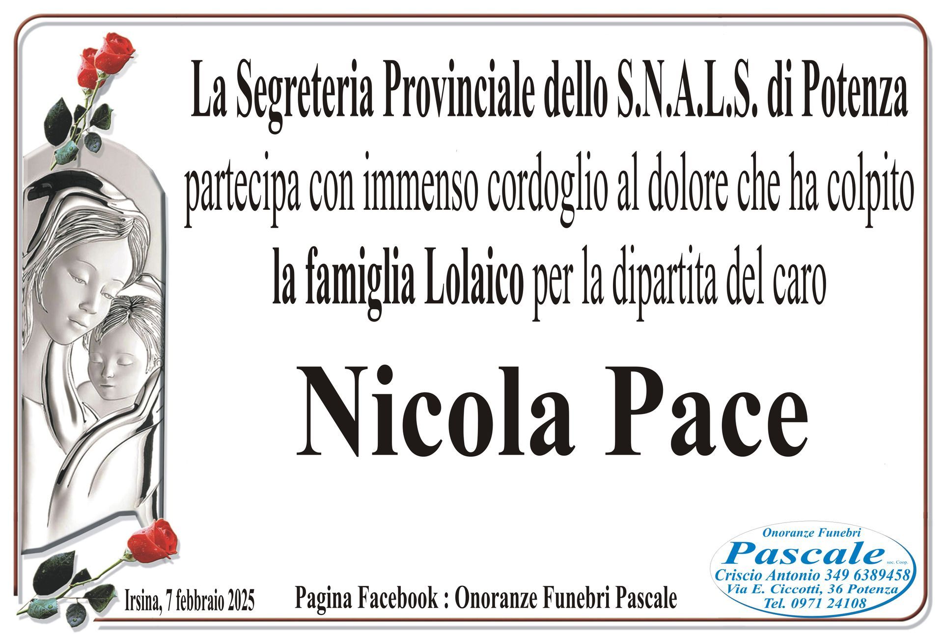 Per informazioni o assistenza contattate la ditta di Onoranze Funebri Pascale.