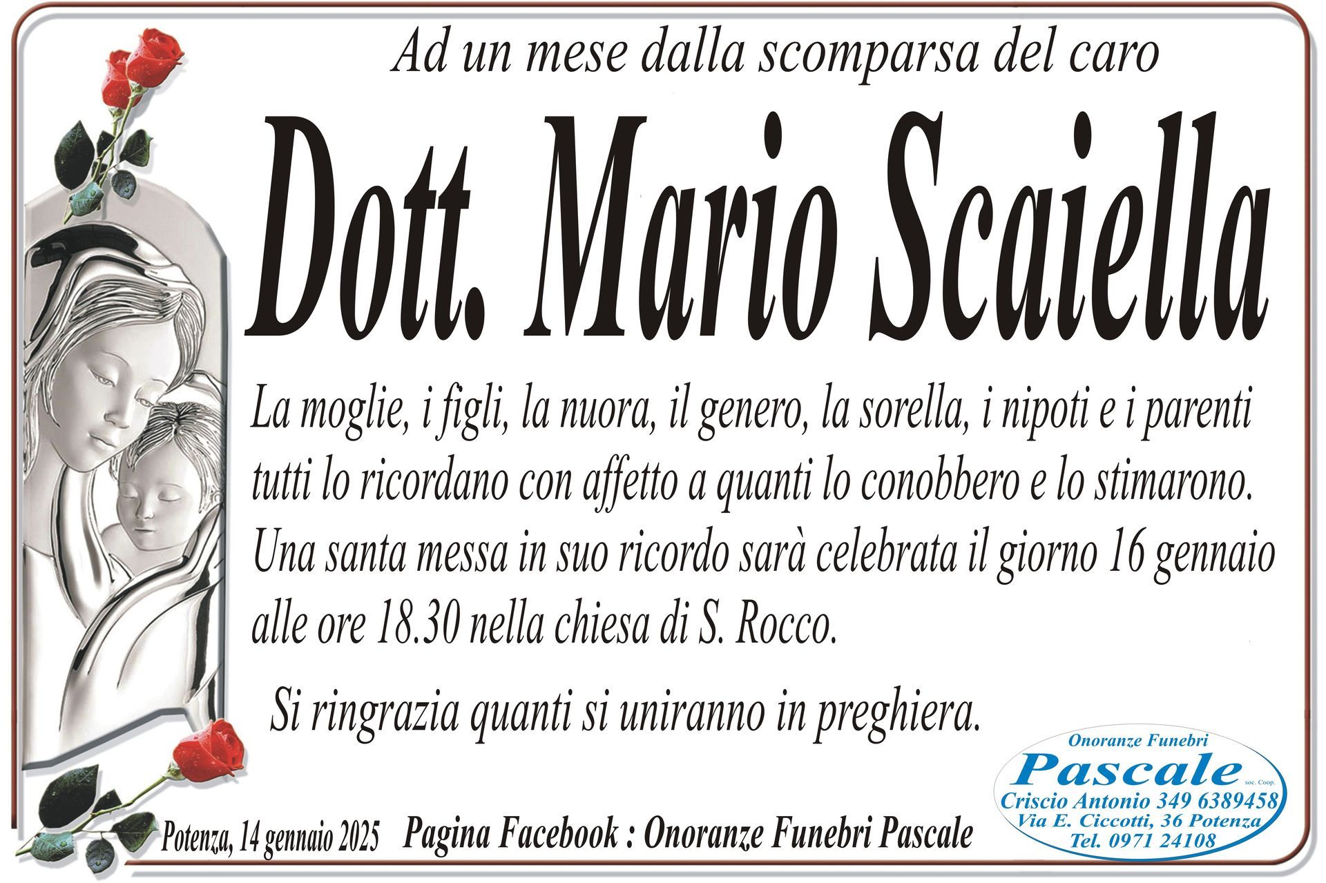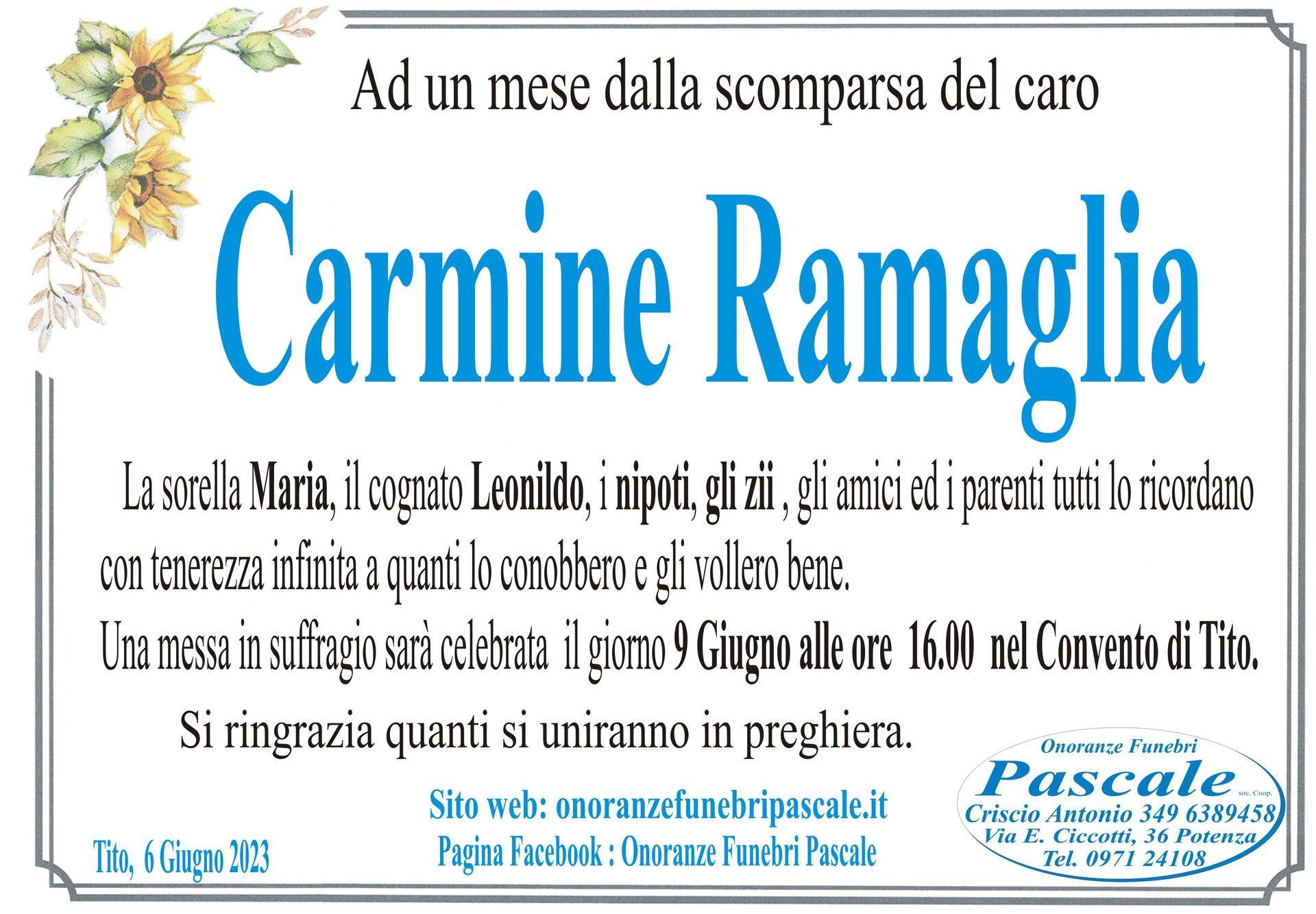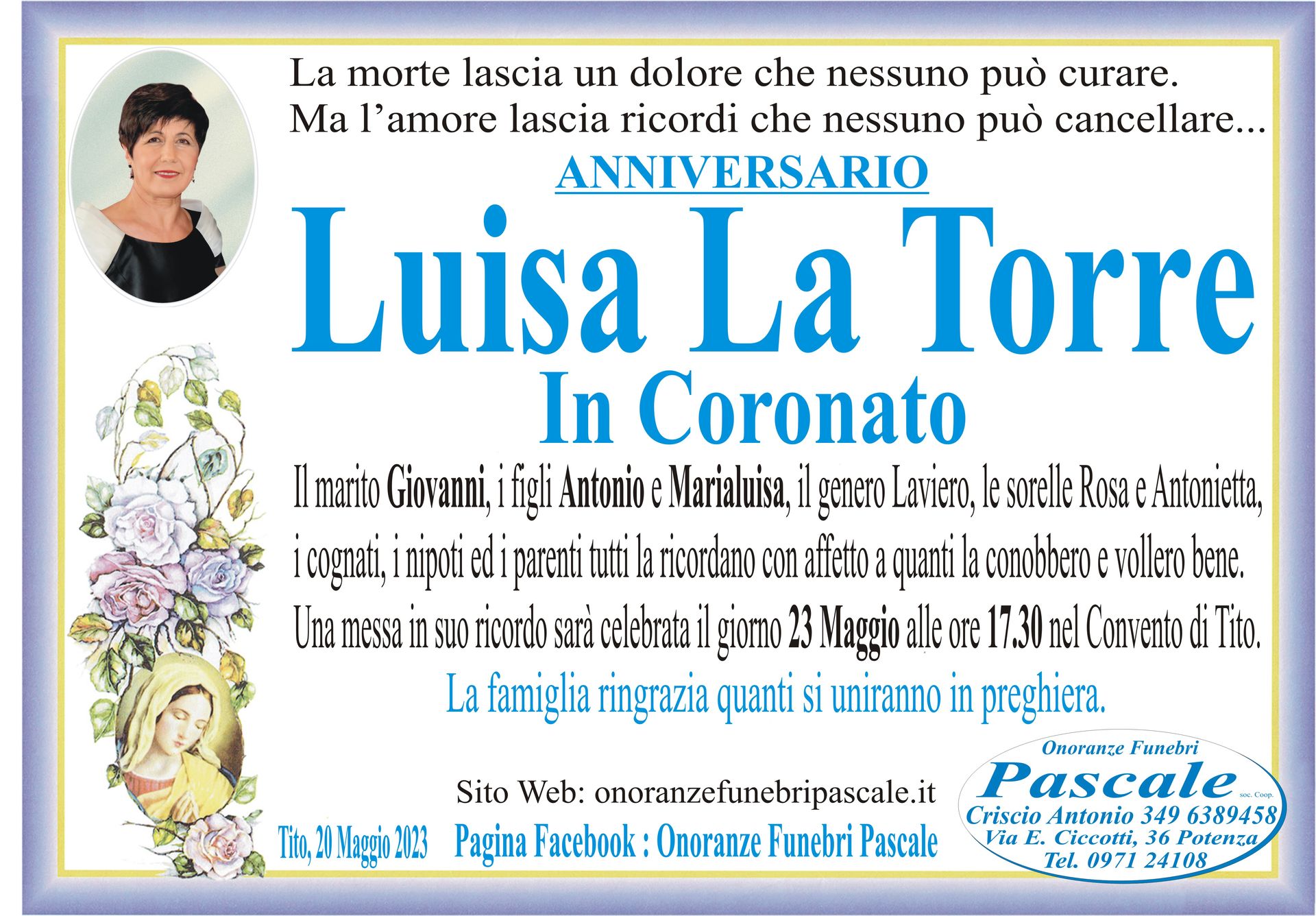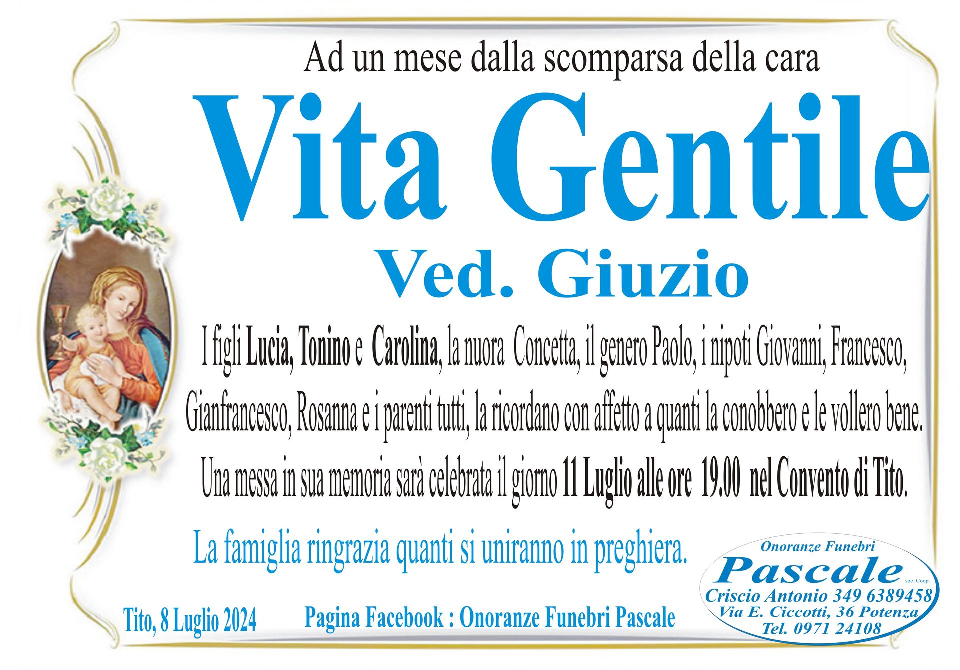 Per informazioni o assistenza contattate la ditta di Onoranze Funebri Pascale.
