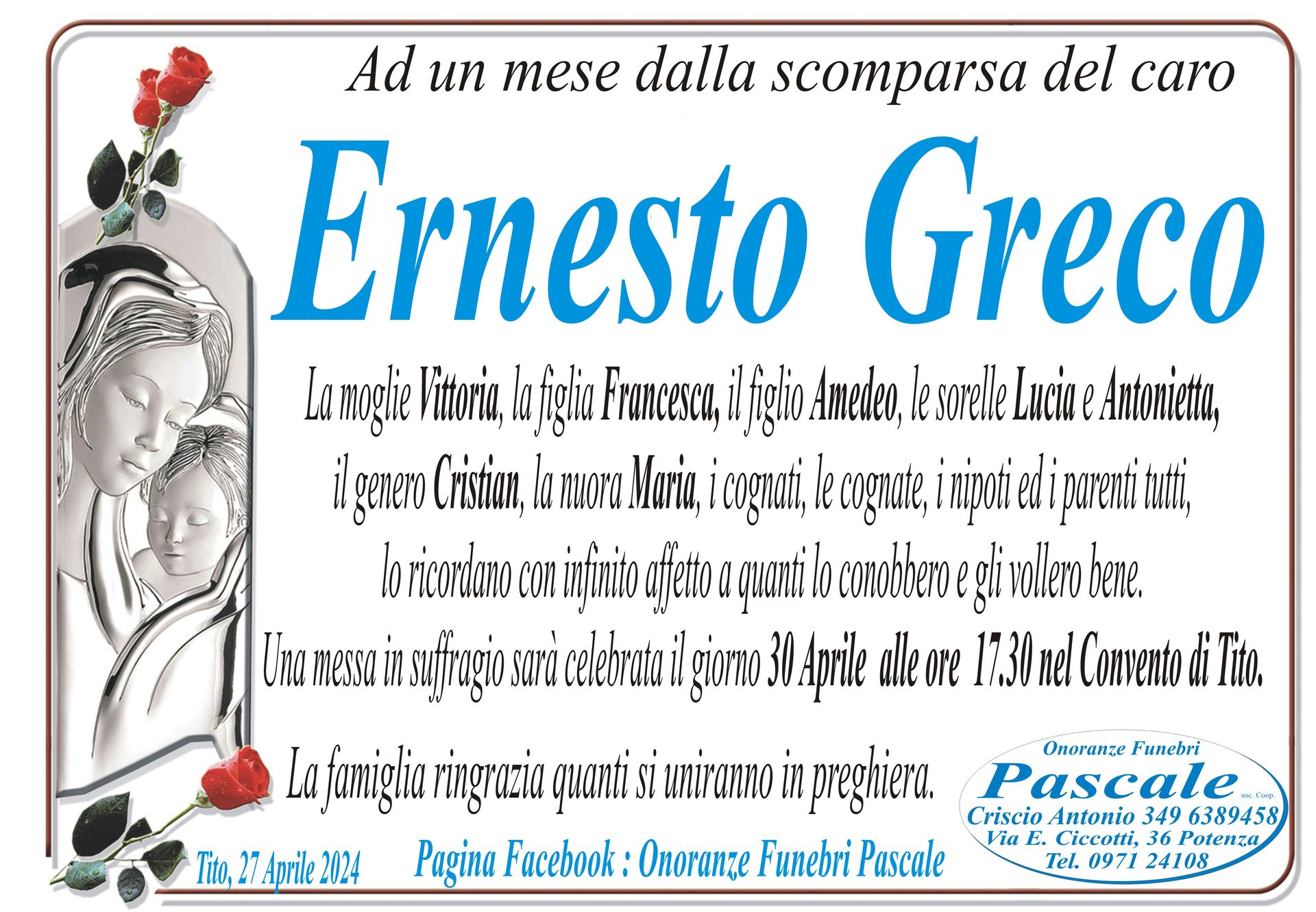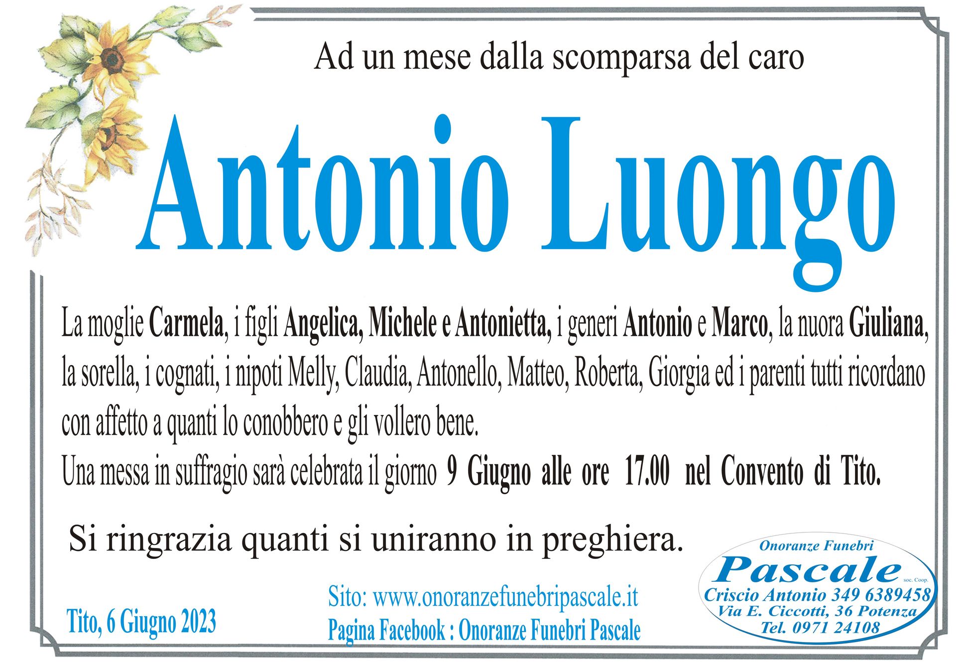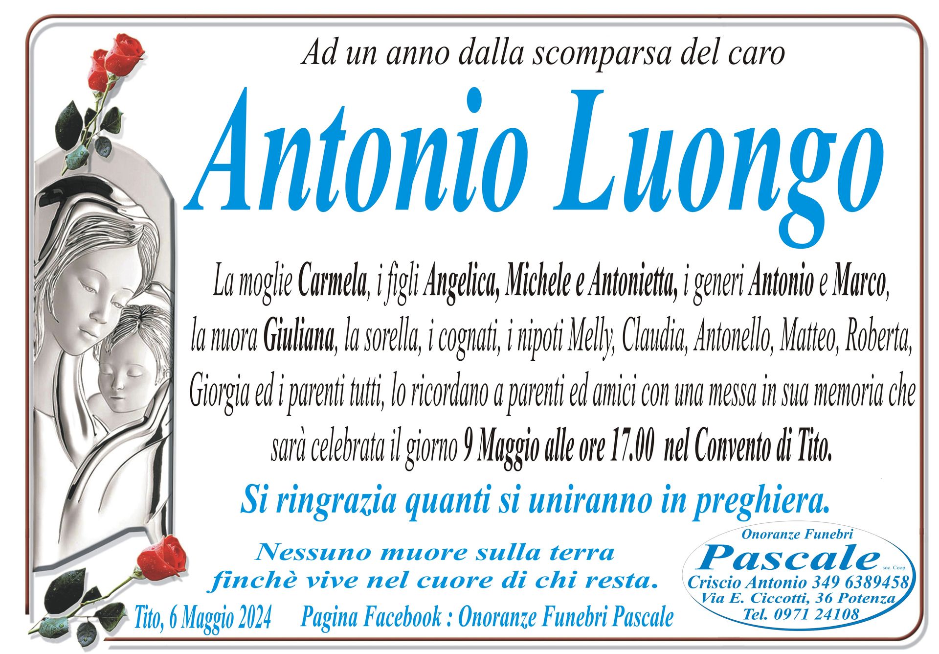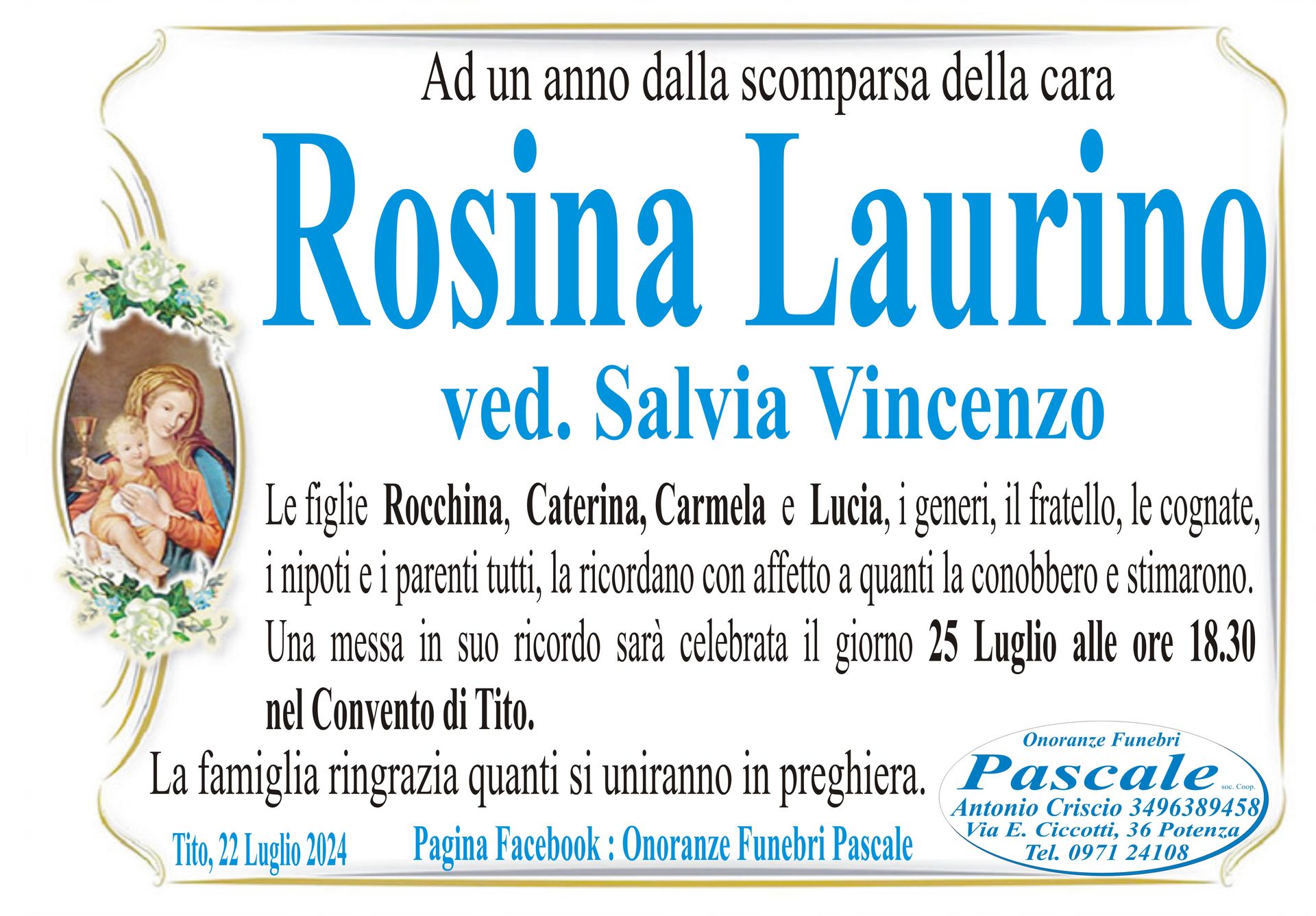 Per informazioni o assistenza contattate la ditta di Onoranze Funebri Pascale.