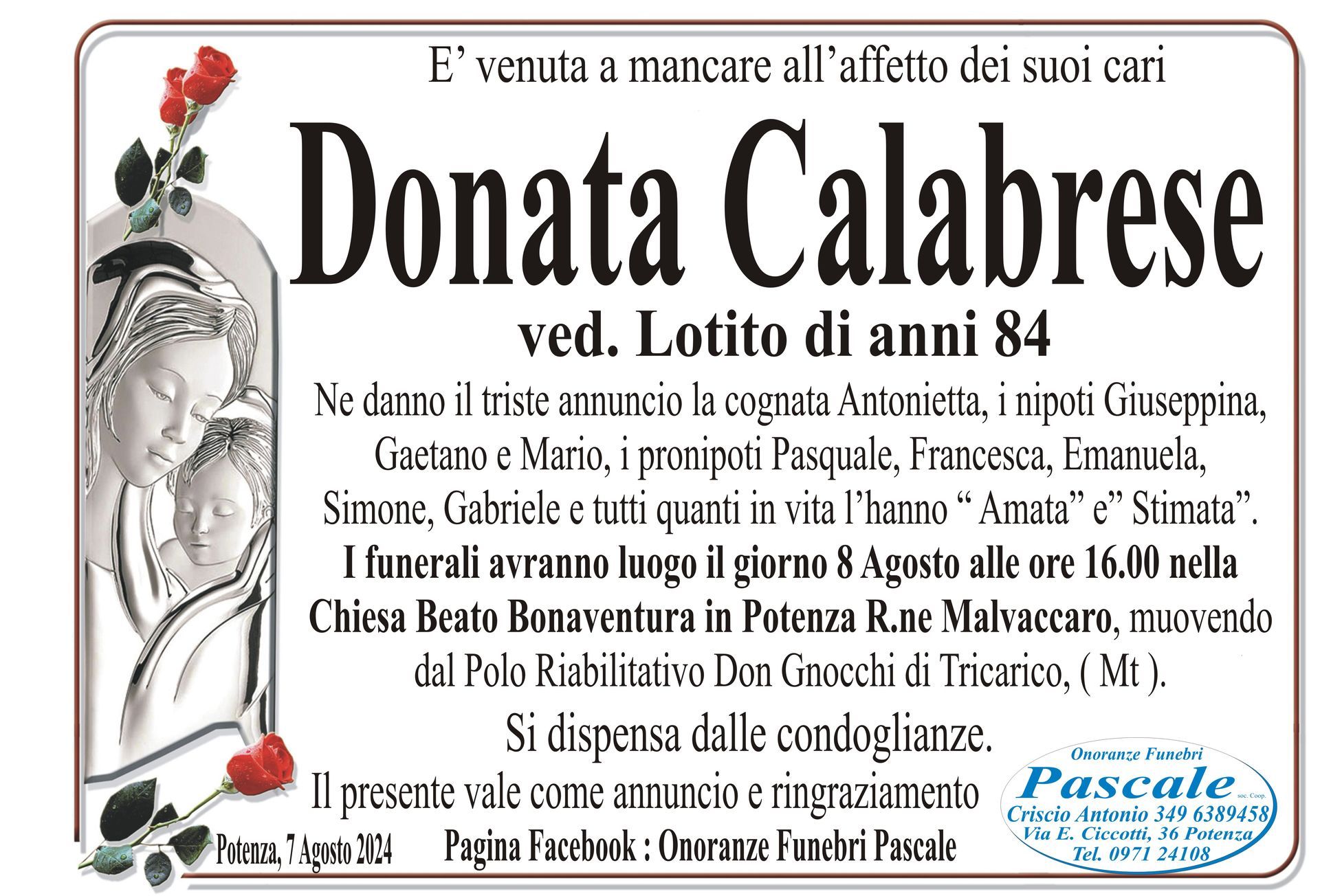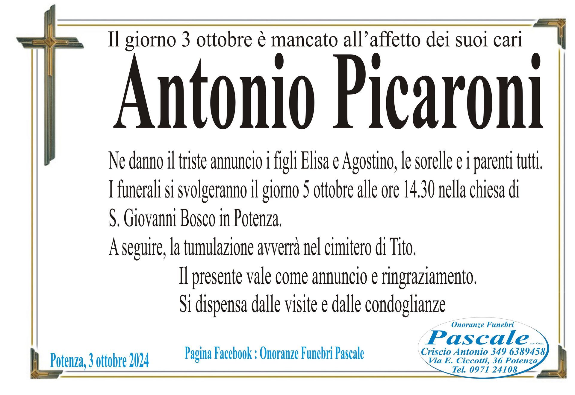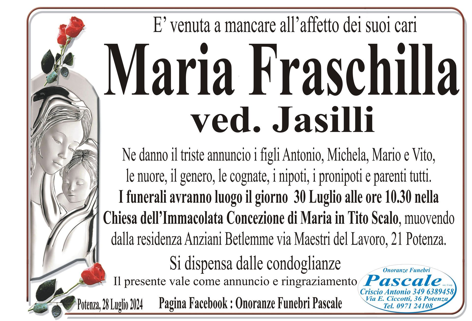 Per informazioni o assistenza contattate la ditta di Onoranze Funebri Pascale.