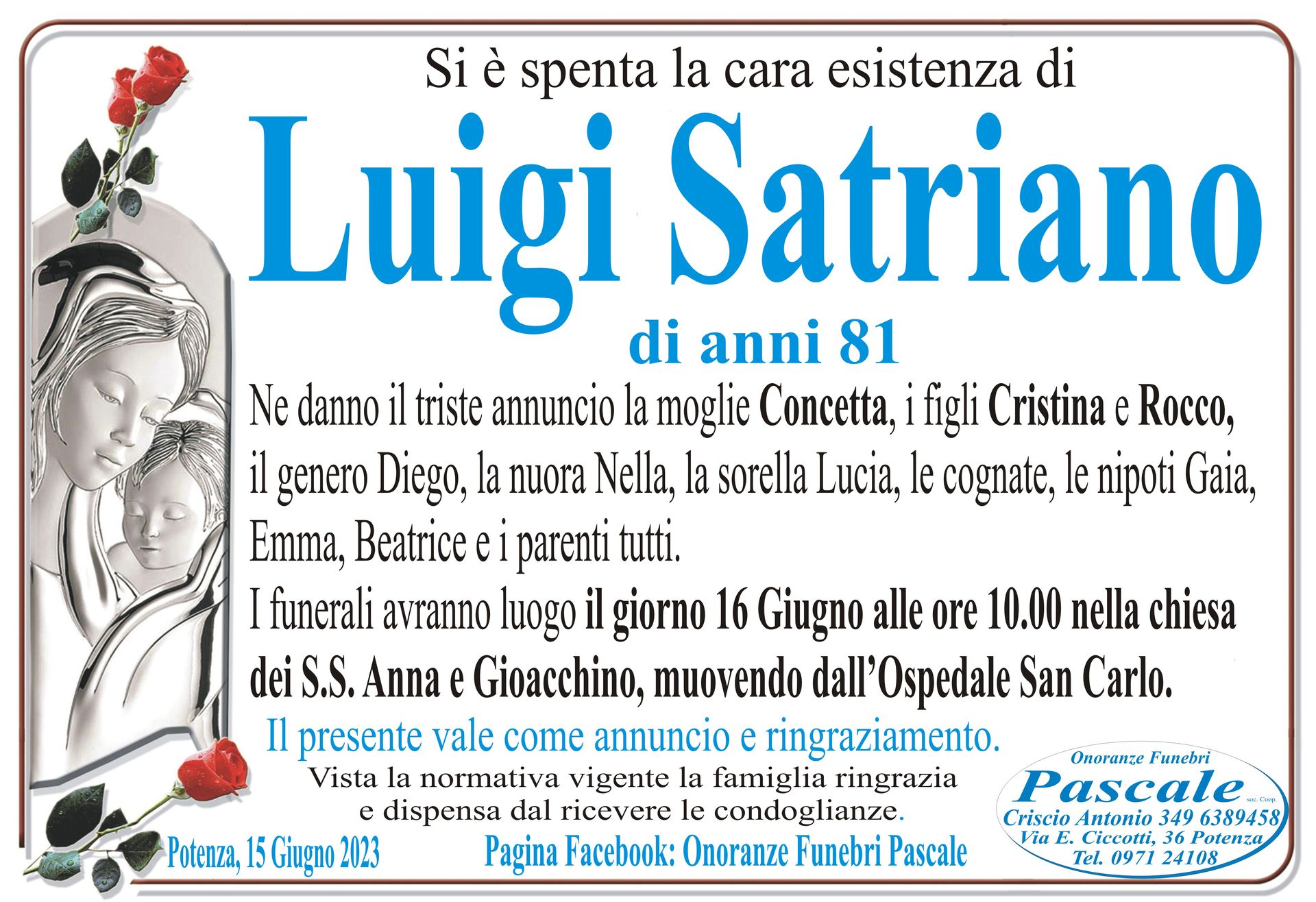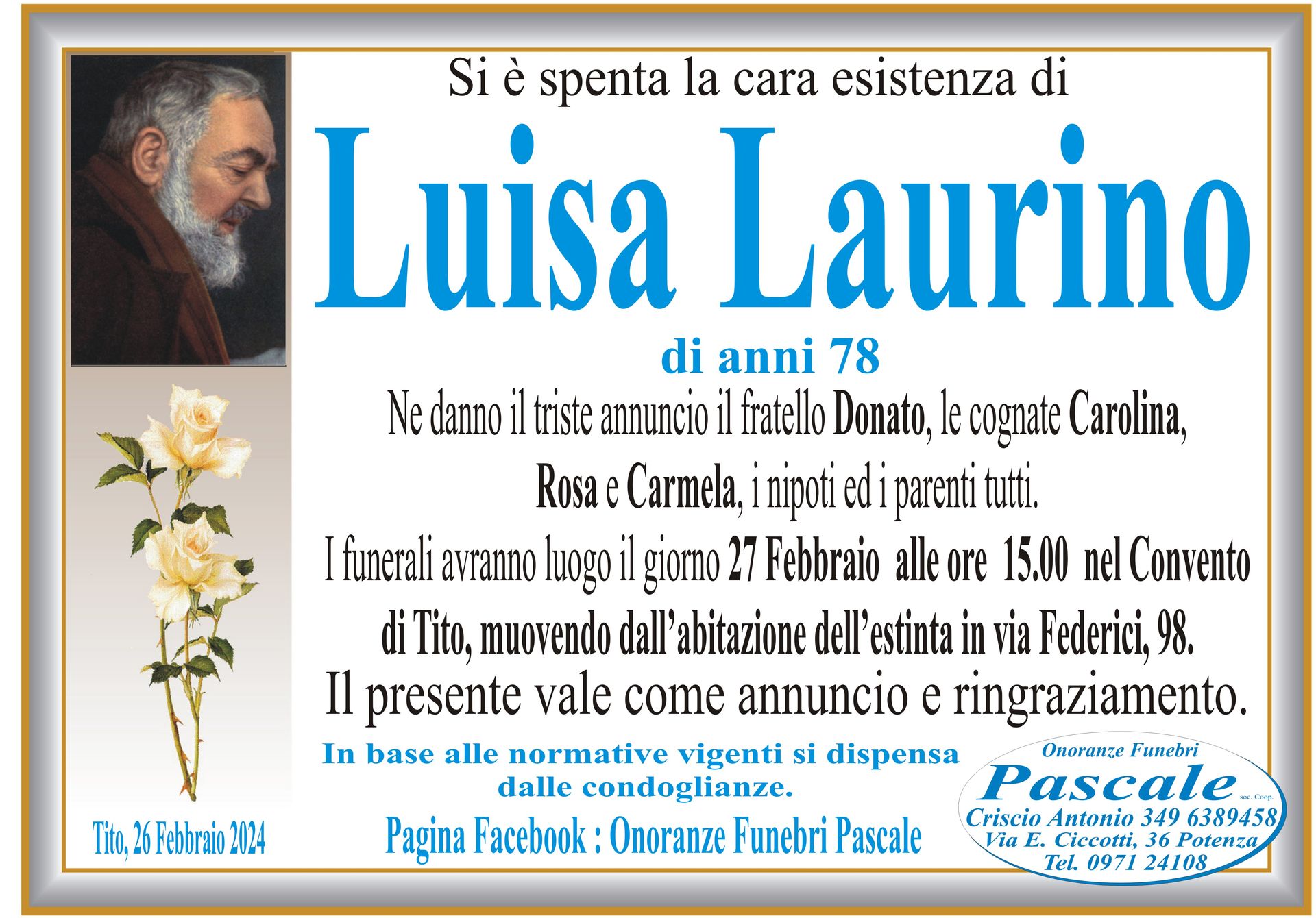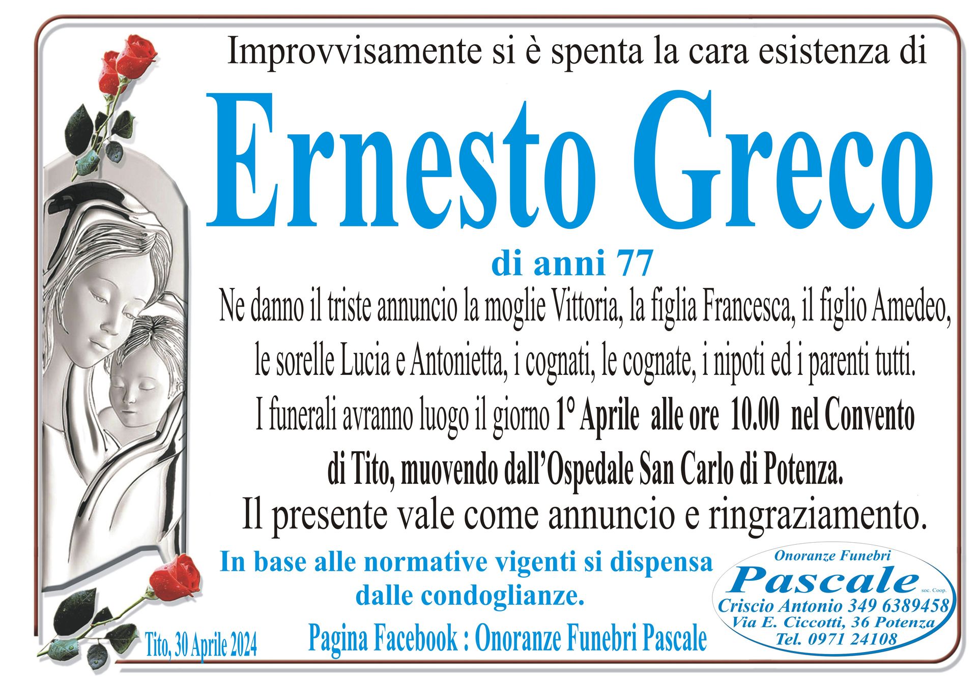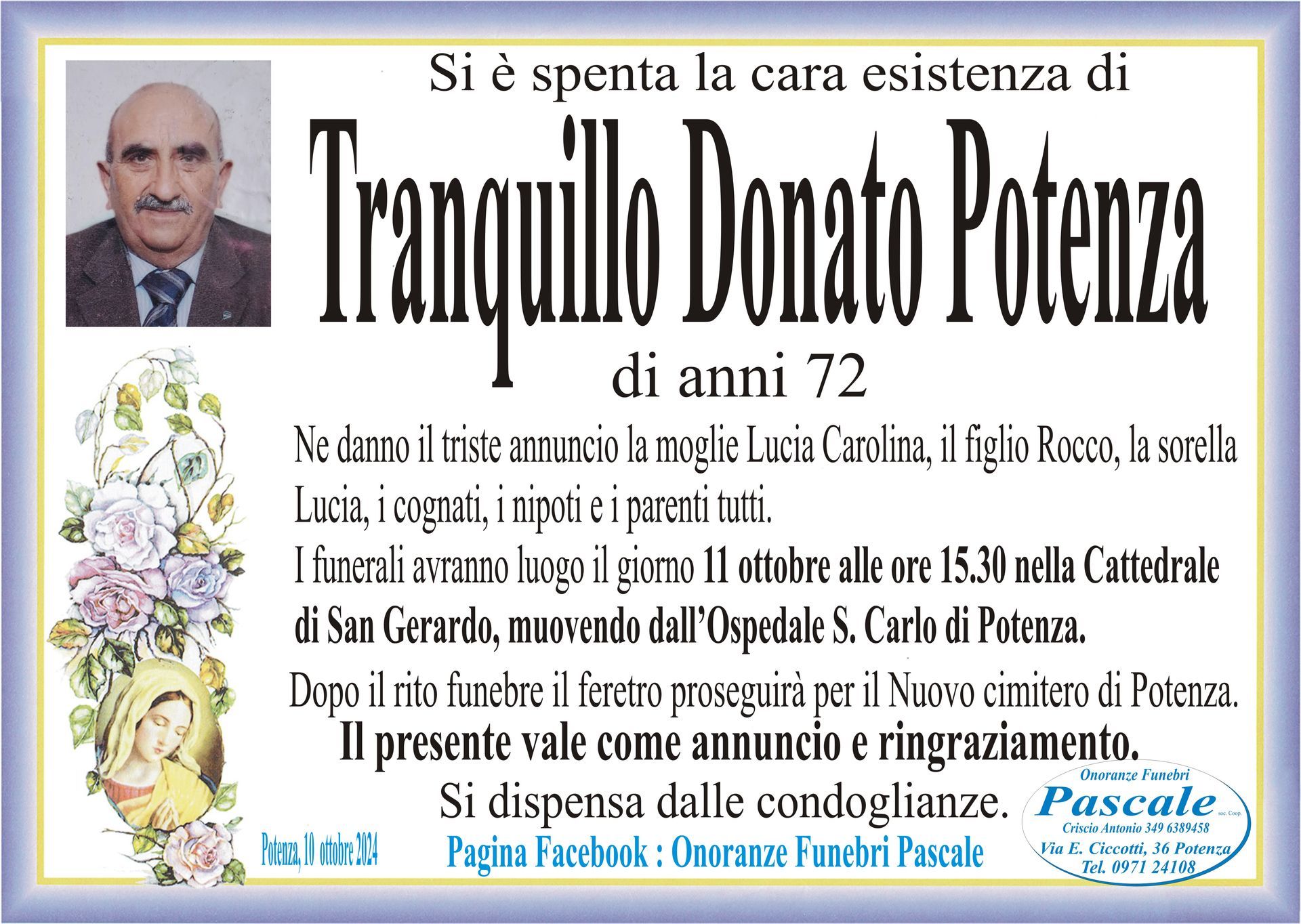 Per informazioni o assistenza contattate la ditta di Onoranze Funebri Pascale.